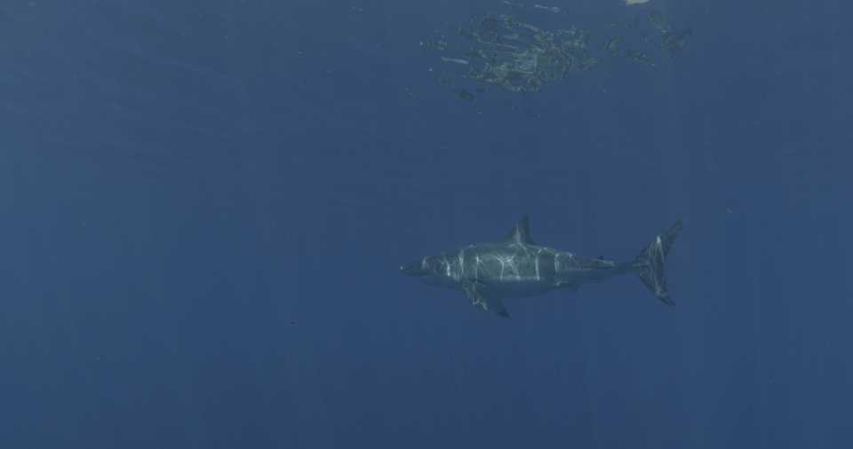 Requin blanc femelle passe sous la surface et accélère puis Martin arrive++