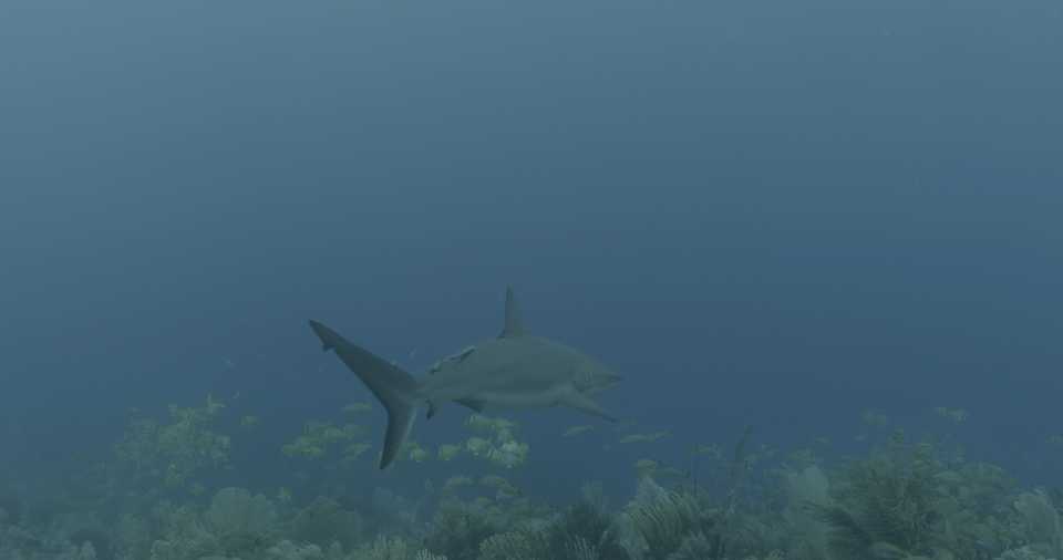 Requin soyeux passe en plan moyen droite gauche, sortie